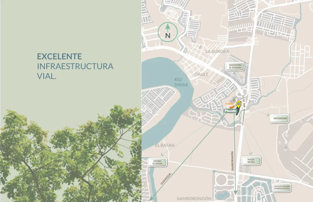 Plazole tiene una ubicación privilegiada a una corta distancia de la zona de El Batán Samborondón.